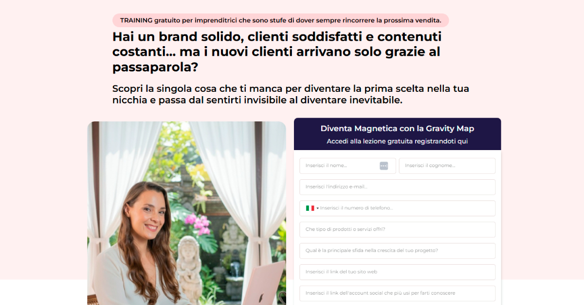 Hai un brand solido, clienti soddisfatti e contenuti costanti… ma i nuovi clienti arrivano solo grazie al passaparola? Scopri la singola cosa che ti manca per diventare la prima scelta nella tua nicchia e passa dal sentirti invisibile al diventare inevitabile.